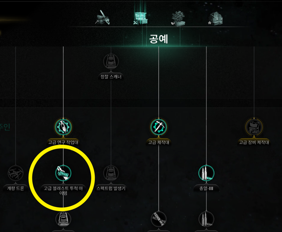 메메틱에서 대형 연구 작업대, 고급 블래스트 투척 아이템을 찍어둔다.