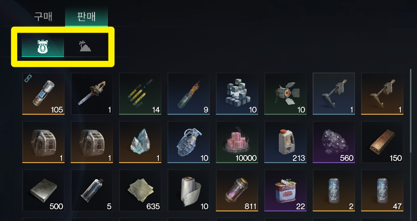 왼쪽 아이콘은 현재 서버의 아이템들을 보여주고