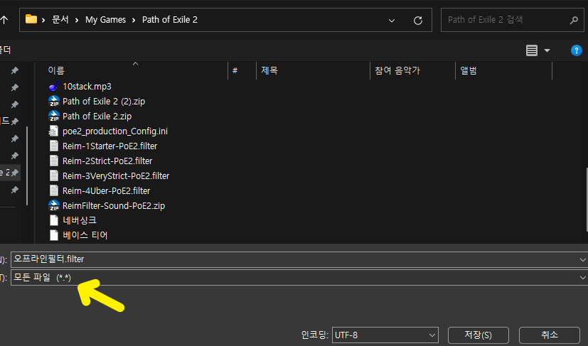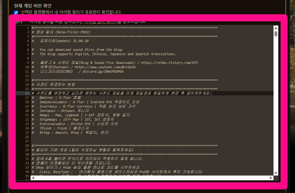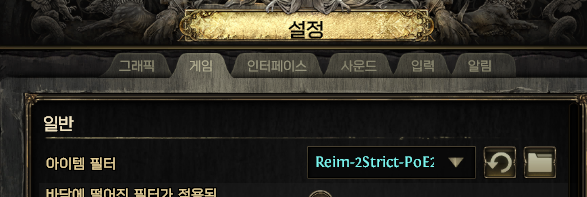 6. 이제 인게임에서 설정 - 아이템 필터 리스트를 눌러보면 저장한 필터가 보일겁니다.
