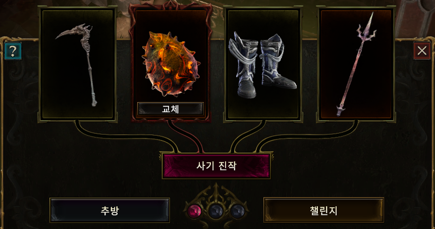 그렇게 반복하면서 구슬이 3개인 상태로 만났을 때 챌린지 버튼을 눌러 네메시스를 처치하고 아이템을 받게 됩니다.