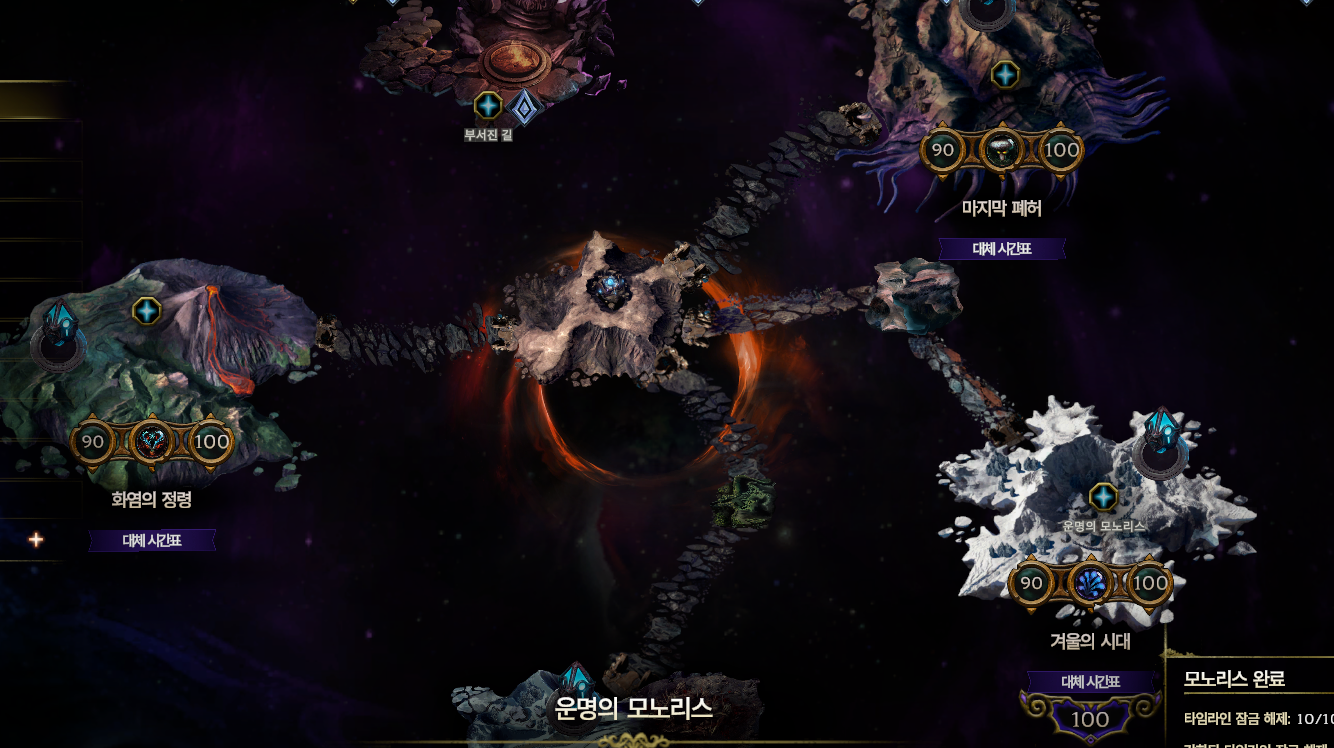 액트를 모두 진행했거나 스킵했다면 시간의 끝에서 모노리스를 진행하게 됩니다