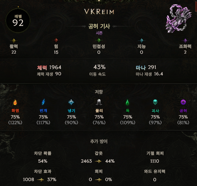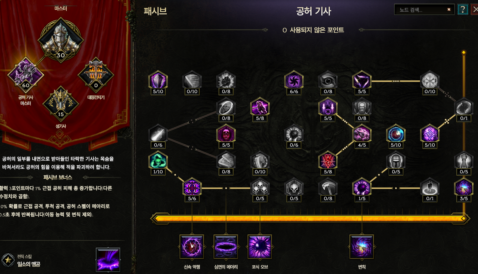 92 렙까지 투자한 공허기사 패시브입니다.