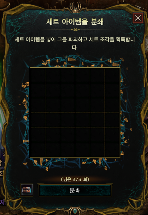 마지막 지저메 아래처럼 제단이 있고 이곳에서 세트 아이템을 3회까지 분쇄할 수 있습니다.