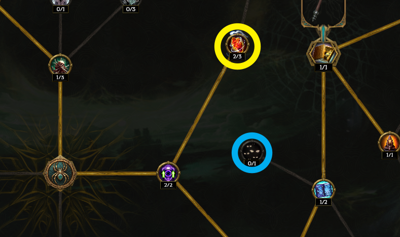 챔피언 몹을 통해 고급 아이템을 파밍하고 싶다면 11시 방향과 6시 방향 노드에 투자하면 됩니다.