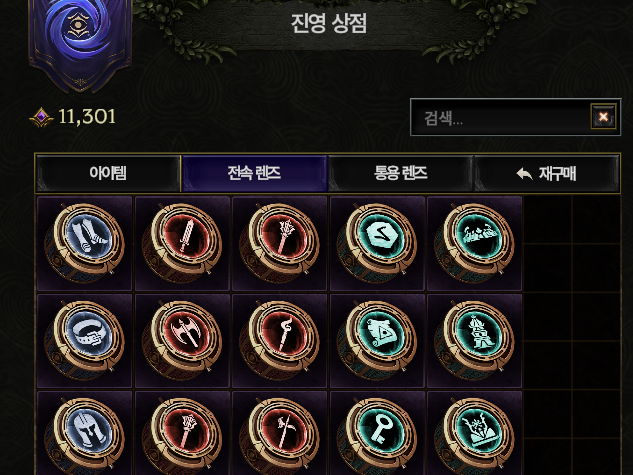 왼쪽 아래에는 렌즈 아이템을 넣을 수 있는데