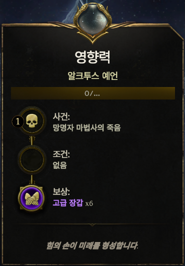 - 추가로 상단에 0/... 이 보인다면 보통 예언 보상을 2번 정도 받을 수 있다는 뜻입니다.