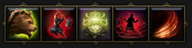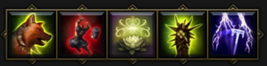 | 스킬 레벨 초반 : 폭풍 맹공, 폭풍 까마귀 소환 이후 : 곰 소환, 함성, 후려치기, 에테라의 축복, 지진 |