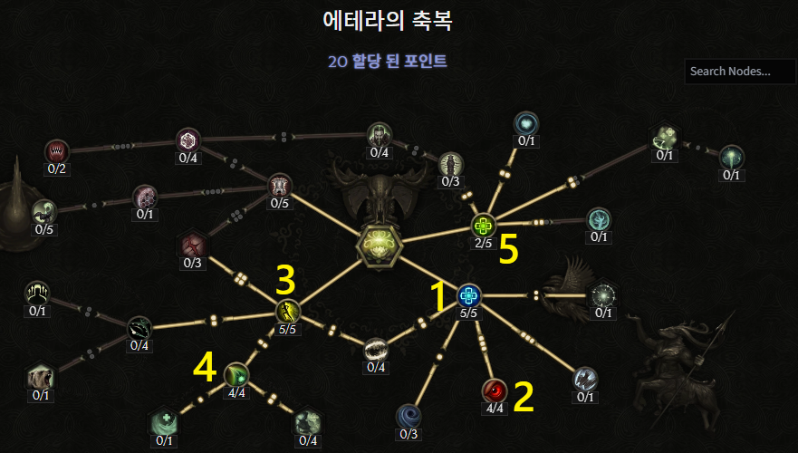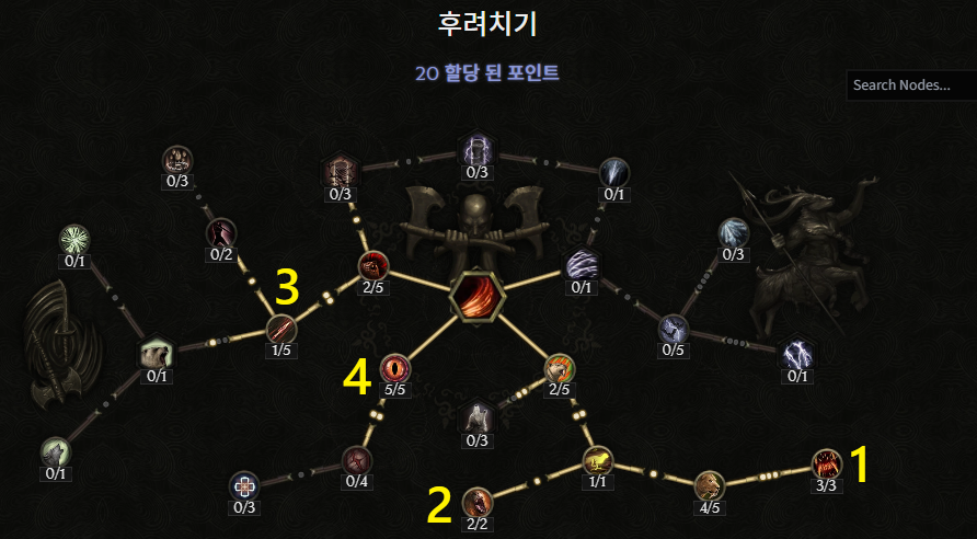 2번은 1포인트만 투자 - 1번 노드부터 투자 - 다시 2번에 4포인트를 투자