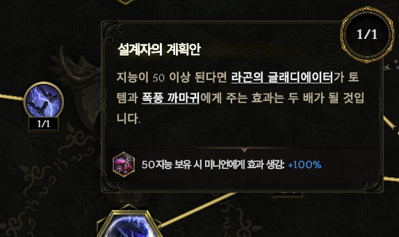 쉽게 50을 넘길 수 있게 되고, 라곤의 글레디에이터 노드로 인해 주문 피해 버프가 4 → 8로 두배가 적용되는 노드이다.