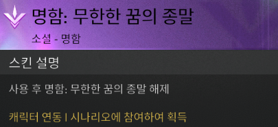 무한한 꿈 시나리오 5단계가 되면 엔딩 보상으로 4개의 스킨을 받게 되니 아래를 참고하세요.
