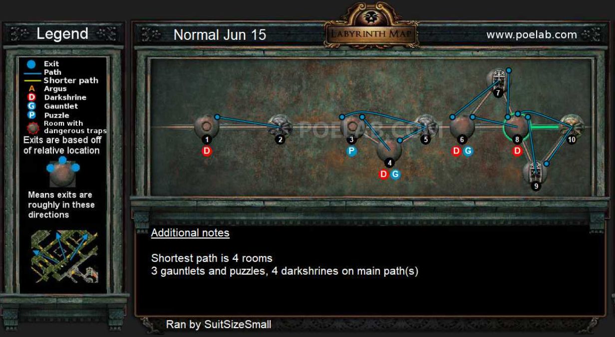미궁 던전은 매일 바뀌지만 https://www.poelab.com/ 사이트를 통해 길을 빠르게 찾을 수 있습니다.