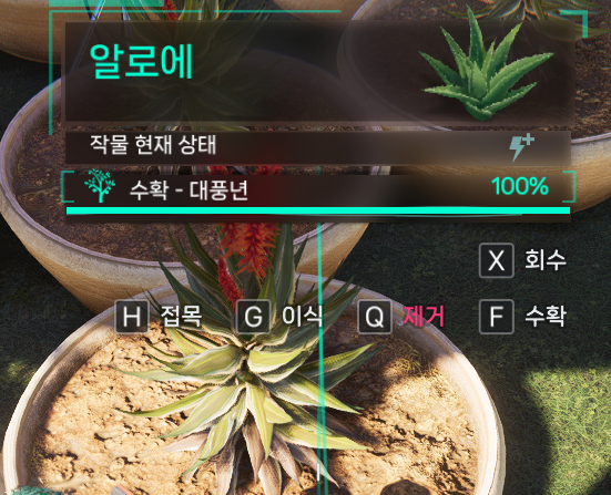 이때는 식물을 F키로 수확하고 새로 재배를해서 성장 시킨 후 접목해야 합니다.