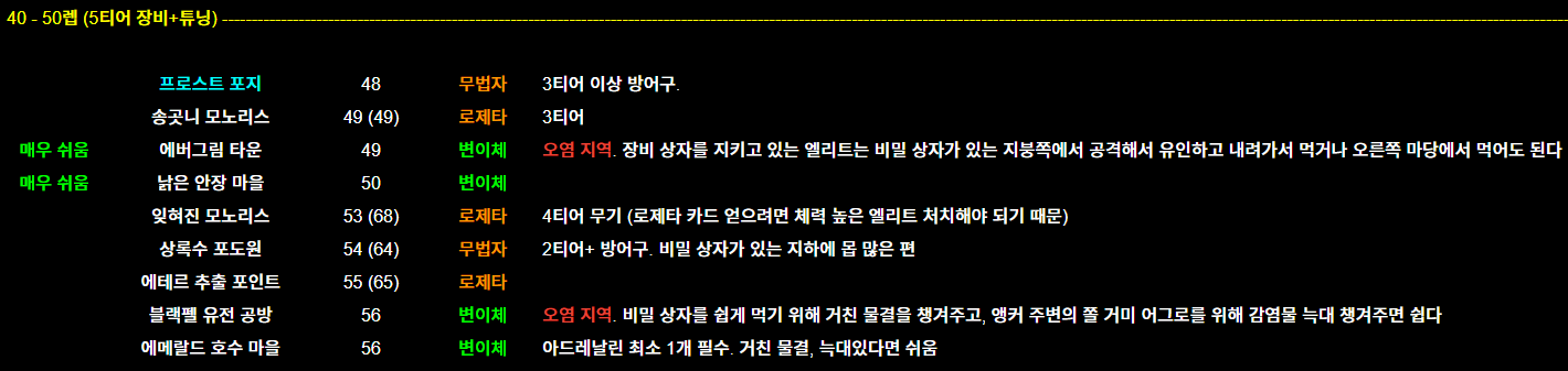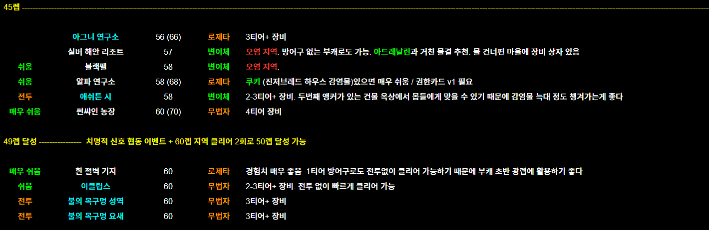 마을 앵커 퀘스트로 렙업하는걸 선호해서 정리해둔 시트입니다.