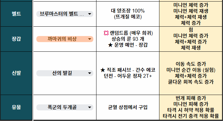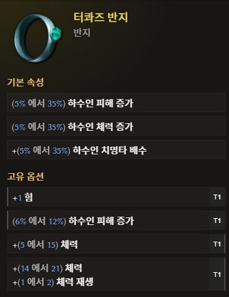 부적과 반지는 터콰즈에 미니언 옵션이 붙습니다.
