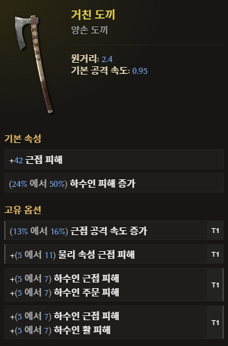 - 초반은 딜 위주로 진행하는 것이 빠르기 때문에 양손 무기를 사용하고