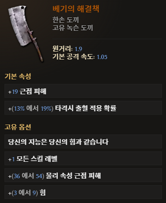 2) 한손 도끼 아무거나 상점에서 사거나 주워서 상승의 룬 사용하면 12.82% (8개) 확률로 베기의 해결책이 됩니다.