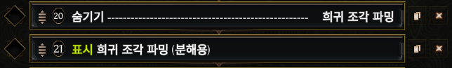 고유 아이템과 세트 아이템을 관리하는 필터도 세팅되어 있습니다.