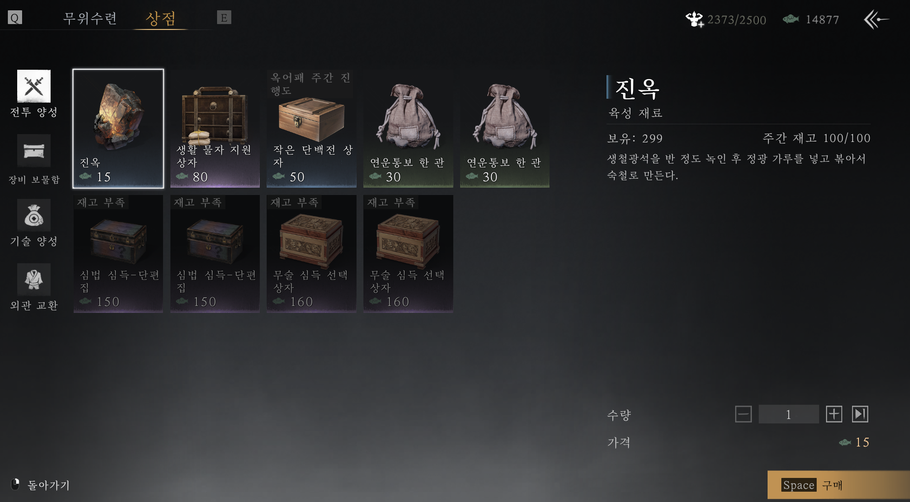 특히 전투 양성과 기술 양성 탭의 아이템들을 살펴보고 필요하면 매주 사두는걸 추천합니다