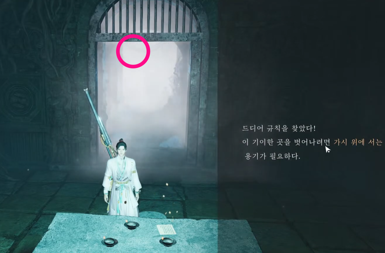 이제 처음 탁자가 있던 태초의 방으로 내려가면 처음에 나무로 가려져있던 입구로 들어갈 수 있게 됩니다