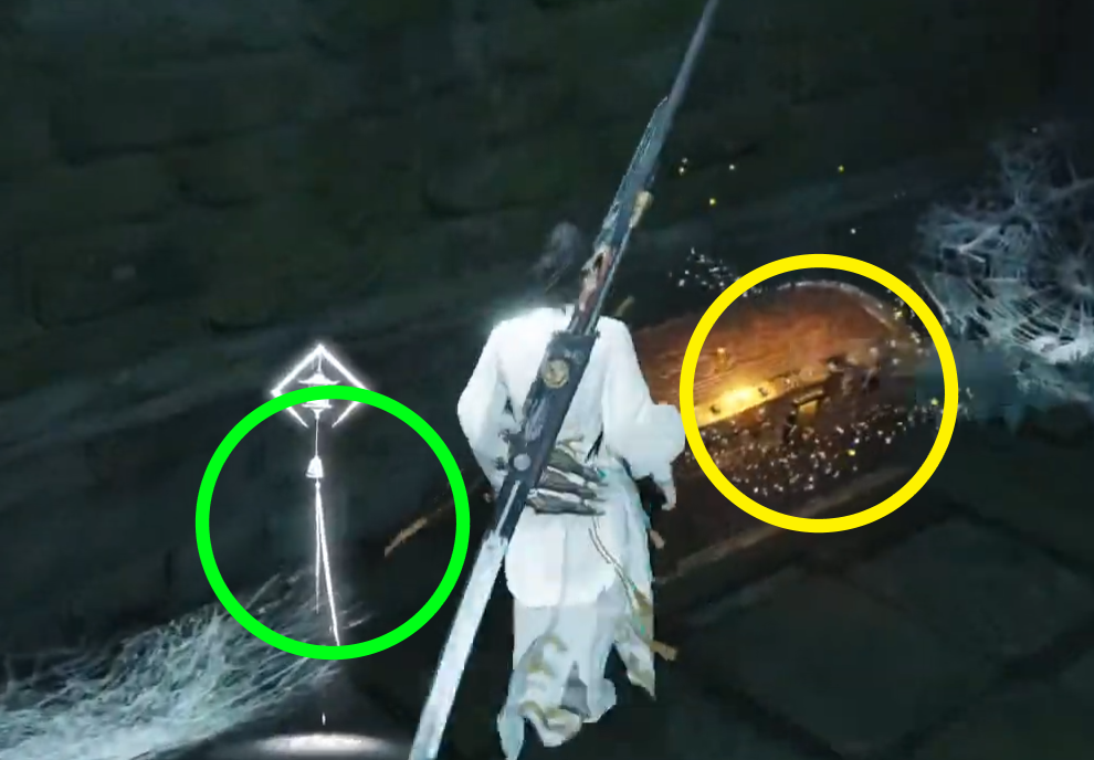 가시 함정 위로 올라가서 왼쪽을 보면 보물상자가 있는 통로가 보입니다