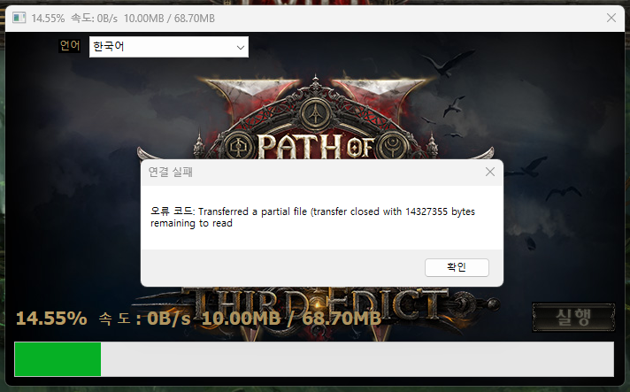 점검 끝났는데 또 이러네. 무슨 파일 지우고 다시 시도하면 되겠지만 왜 매번 같은 문제가 반복되냐