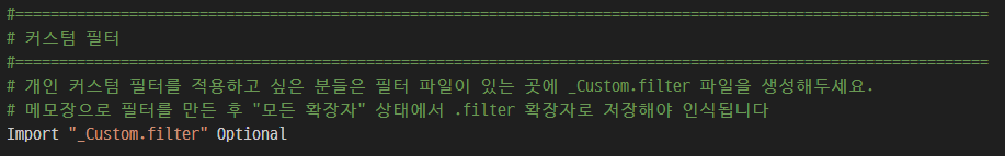 저는 _Custom.filter로 설정해 두었기 때문에 제 필터를 사용하신다면 이름을 똑같이 만드시면 됩니다.