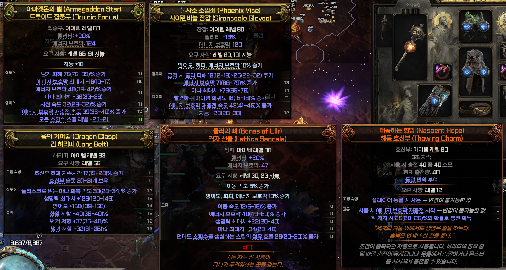 시원한 광역 맵핑과 강화된 맹신자로 보스를 순삭시킬 수 있는 강력한 빌드입니다.