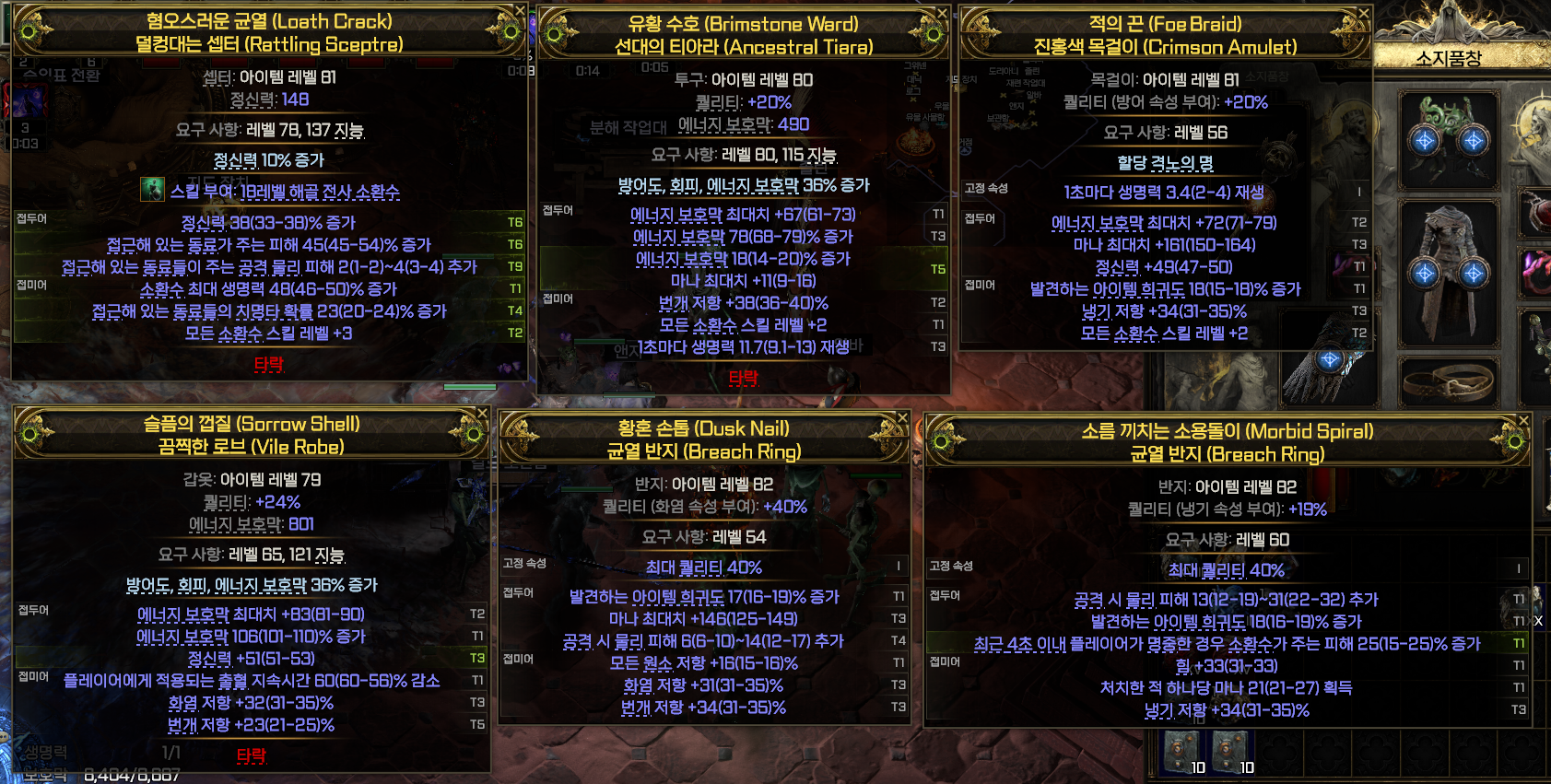 특히 POE2를 시작하고 처음으로 균열과 의식 보스 마지막 단계까지 쉽게 클리어한 빌드입니다!