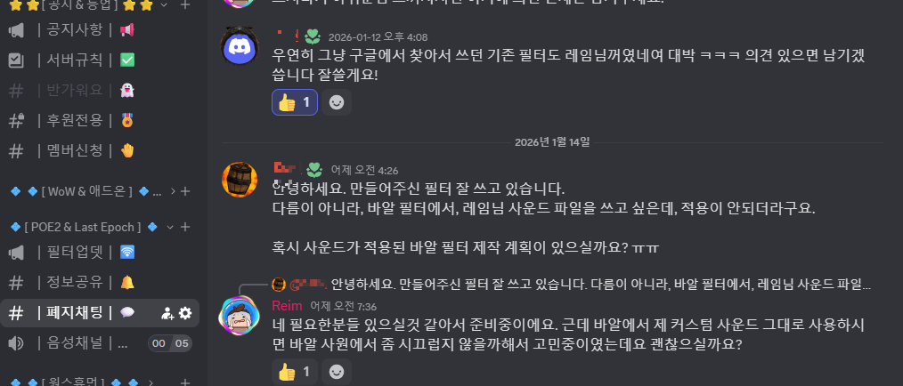 커스텀 필터는 어떤 규칙으로 만들었는지를 디스코드로 공유해 주세요.