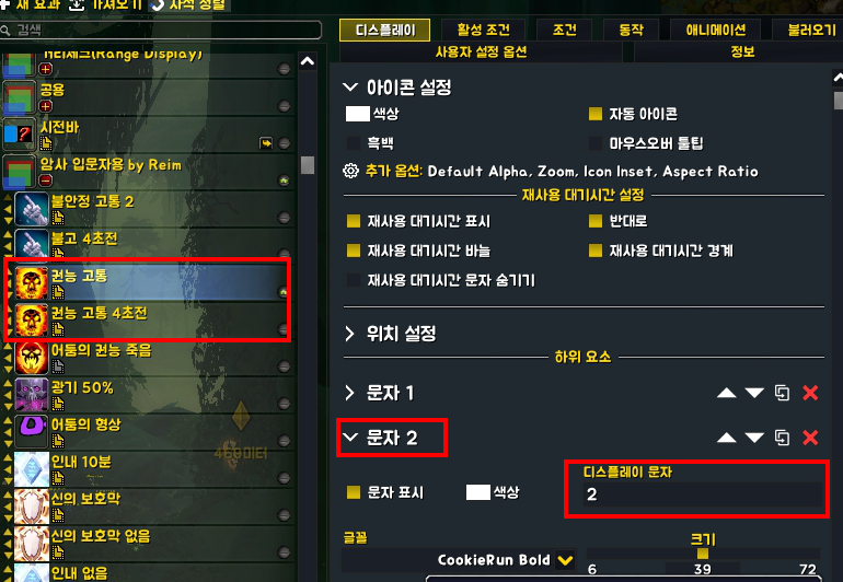 스킬 아이콘 위에 보이는 단축키를 바꾸고 싶거나 지우고 싶다면 문자2에서 설정합니다.
