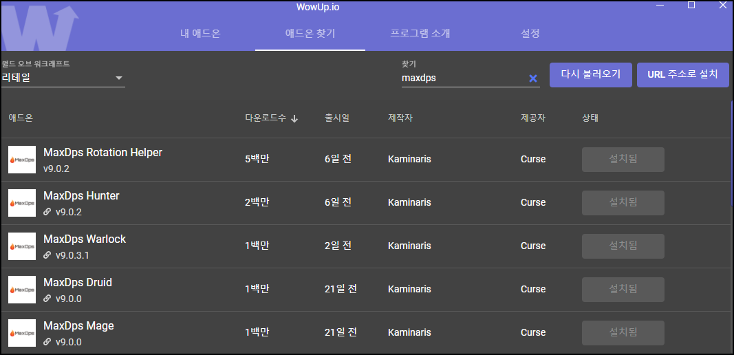 MaxDPS Rotation Helper와 직업별 추가 애드온을 같이 받으면 됩니다.