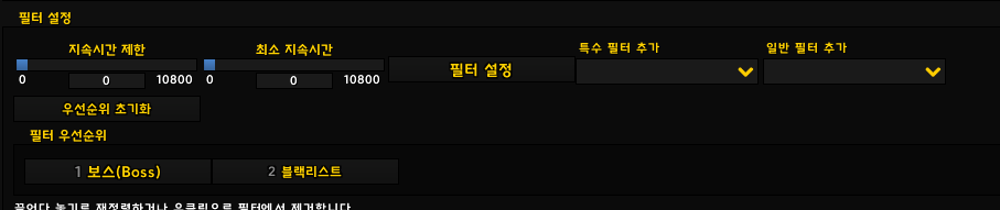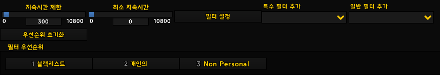 - Sorting : 가방에서 자동정렬 할때 제외할 리스트를 추가할 수 있는 항목입니다. (쐐기돌 등록)