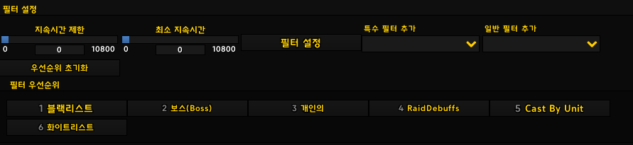 프레임별 오라 디버프/버프 기본값 설정 메모