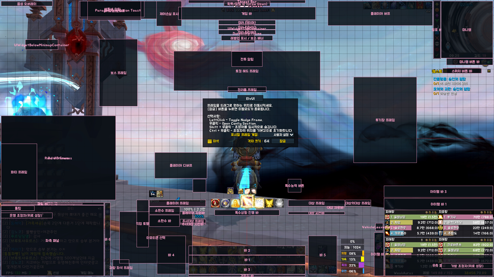 기본값 프로필과 동일하며 파티, 레이드프레임만 왼쪽으로 이동하고 파티프레임을 요약했습니다.