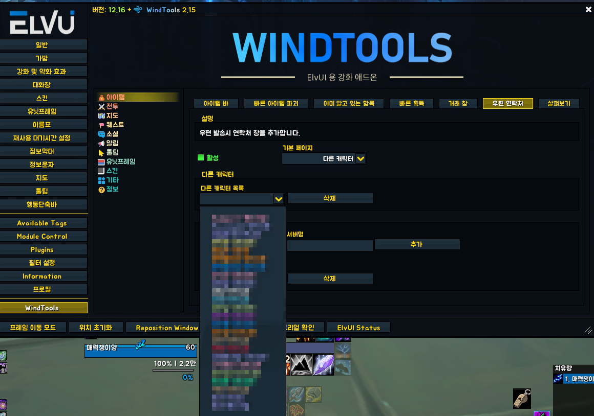 윈드툴-우편 연락처에서 캐릭터명 선택하시고 삭제하시면 됩니다.