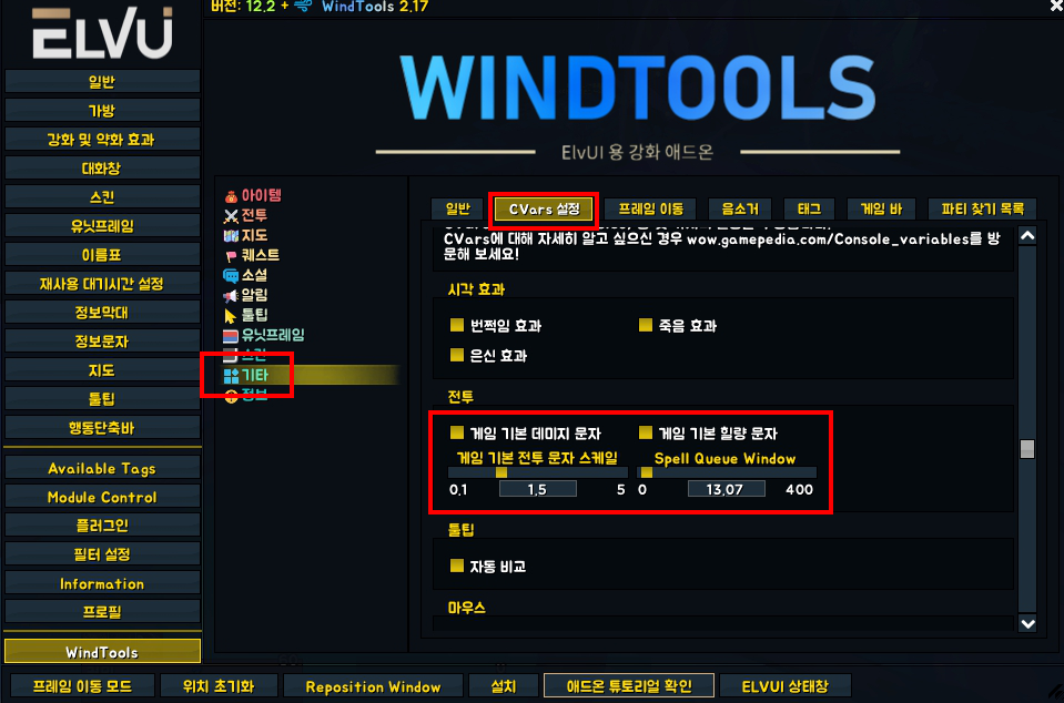 | ElveUI - WindTools 프로필 & 설정 (2월 11일) (24) | 2021.02.11 |