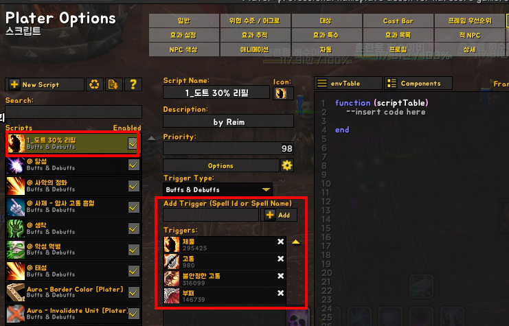 기존에 wago.io에서 받았던 스크립트 중 하나는