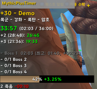 쐐기 진행 상황을 보여주는 애드온 MythicPlus Timer 입니다.