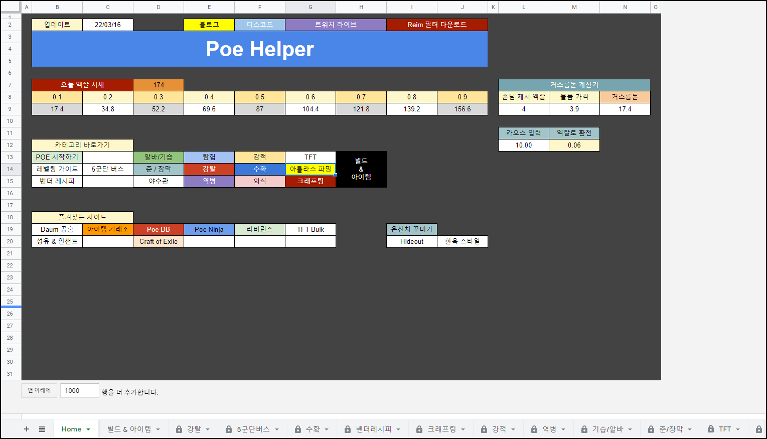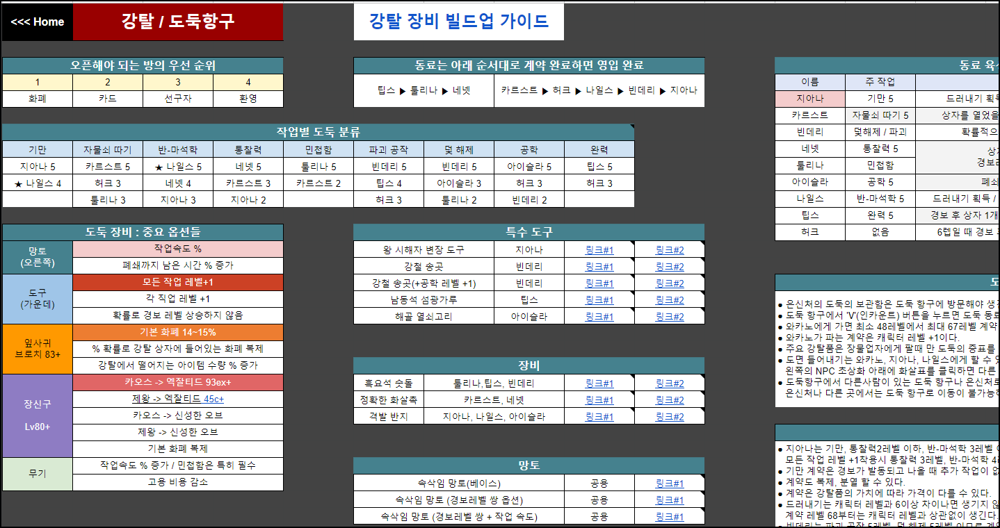 게임이 어려워서 복귀한김에 모르는것들을 엑셀로 정리하면서 게임을 즐기고 있습니다.