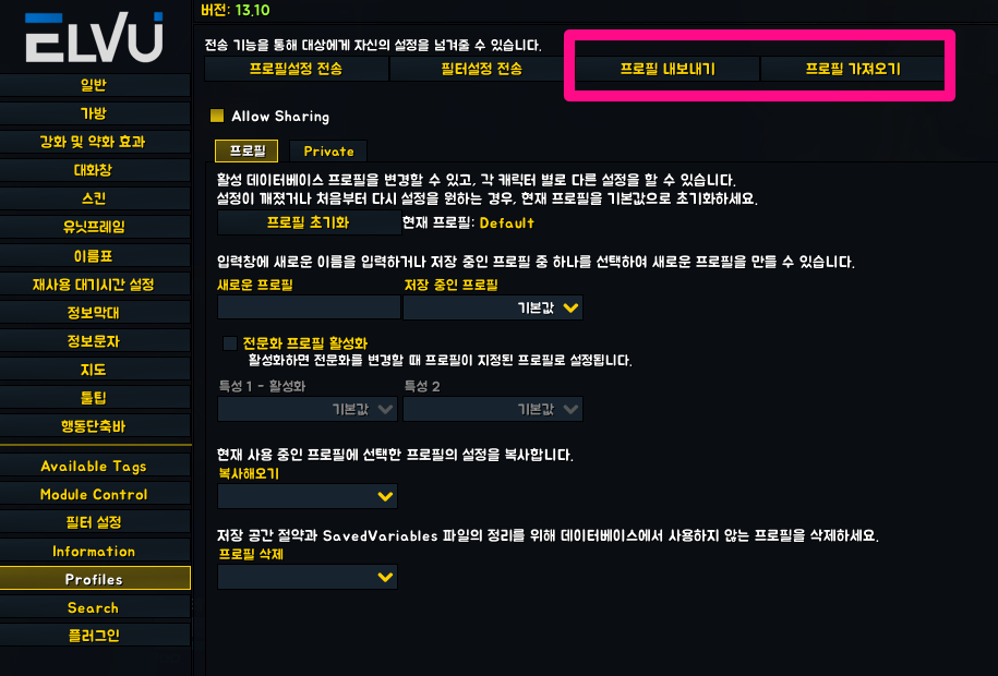 기본적으로 본섭에서 사용하는 ElvlUI를 내보내기해서 클래식 버전에 적용이 가능합니다.
