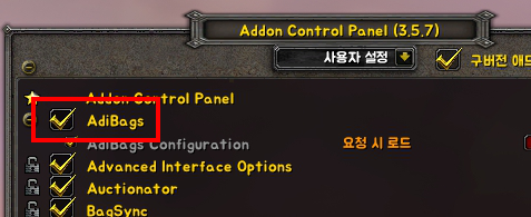 Q. ElvUI 가방과 Adibag이 겹쳐요
