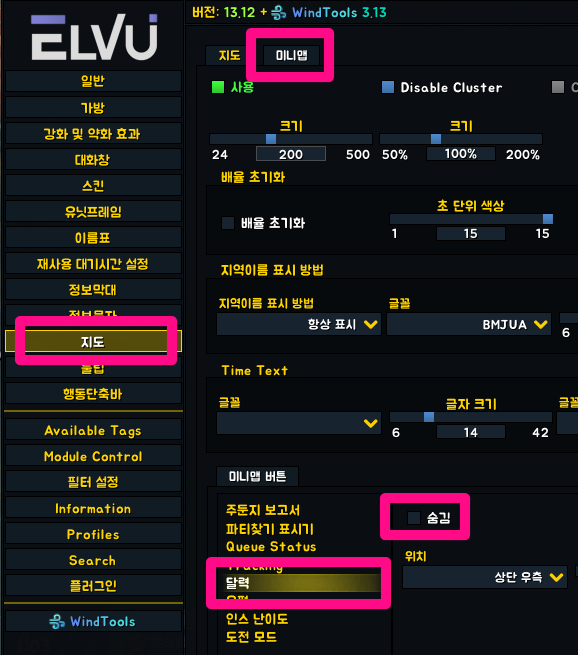 A. ElvUI - WindTools - 알림에서 원하는 옵션을 설정 가능합니다.