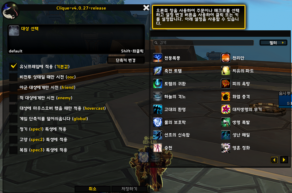클릭큐는 마우스로 힐을 하거나 스킬을 사용할 수 있는 애드온입니다.