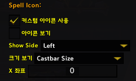 스킬 아이콘을 시전바 내부에 보이게 할지 이름표와 시전바 크기만큼 크게 보일지 설정할 수 있습니다.