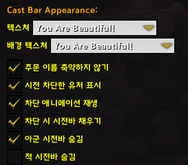 일반 탭의 텍스쳐와 마찬가지로 시전바의 텍스쳐를 바꿀 수 있습니다.