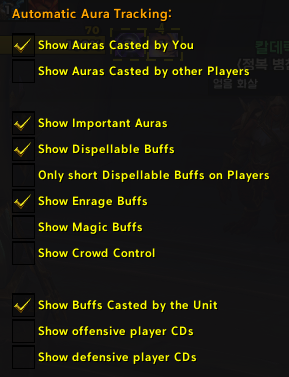Show Dispellable Buffs는 해제 가능한 오라를 보여주기 때문에 반드시 체크하는것이 좋습니다.