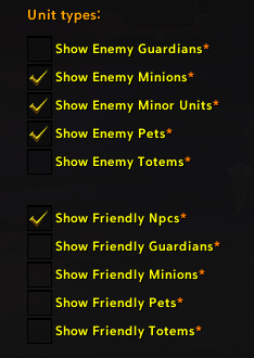 소환수, 토템, 경비병 NPC 이름표를 보거나 끄려면 이곳에서 체크하거나 해제하시고