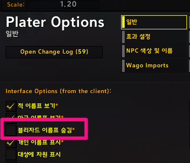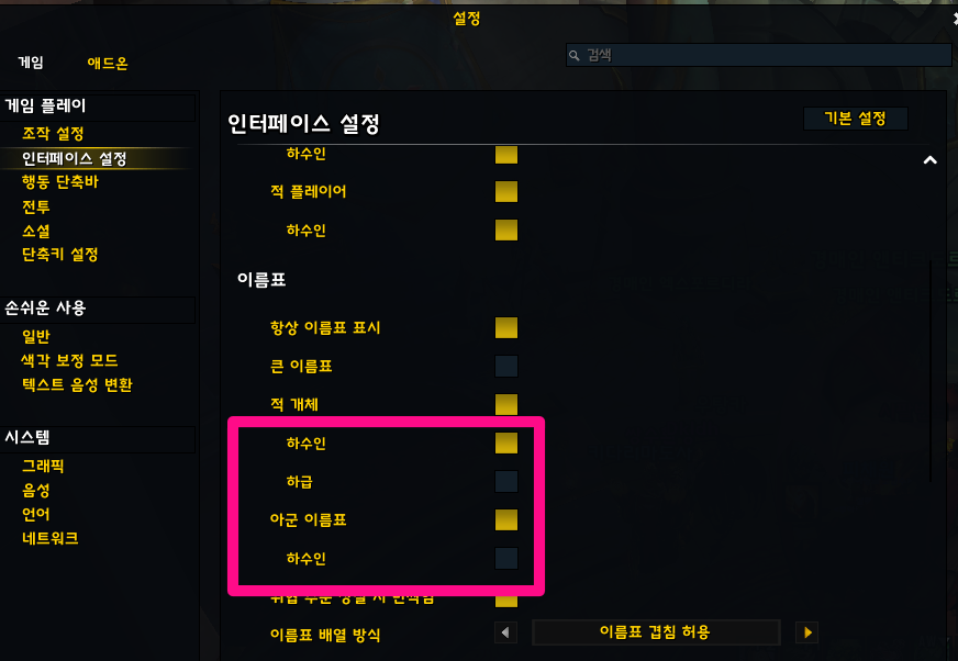 위 방법으로도 아군 이름표가 보이지 않는다면, 또는 이름표에 직업 색상 적용을 적용하고 싶다면
