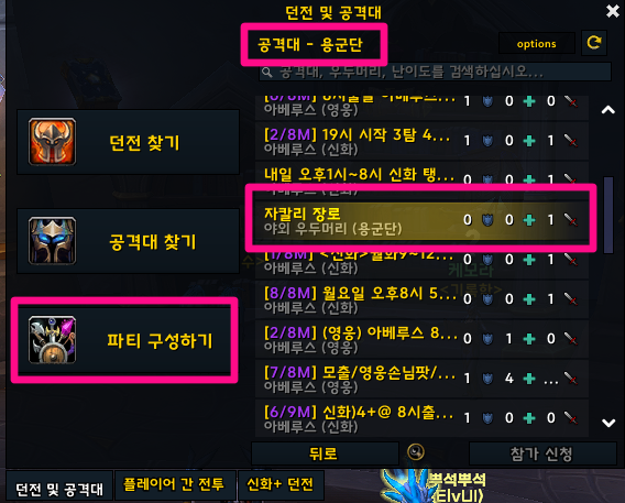 단축키 i > 공격대 찾기 > 어둠의 도가니 아베루스 관련된 4곳 참여합니다.
