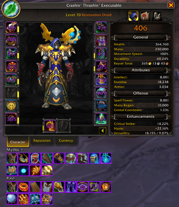 캐릭터창을 열면 bis 아이템을 보여주는 위크오라입니다.